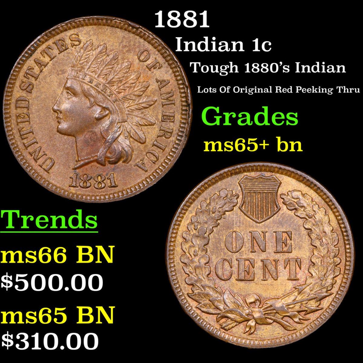 1881 Indian Cent 1c Grades GEM+ Unc BN.