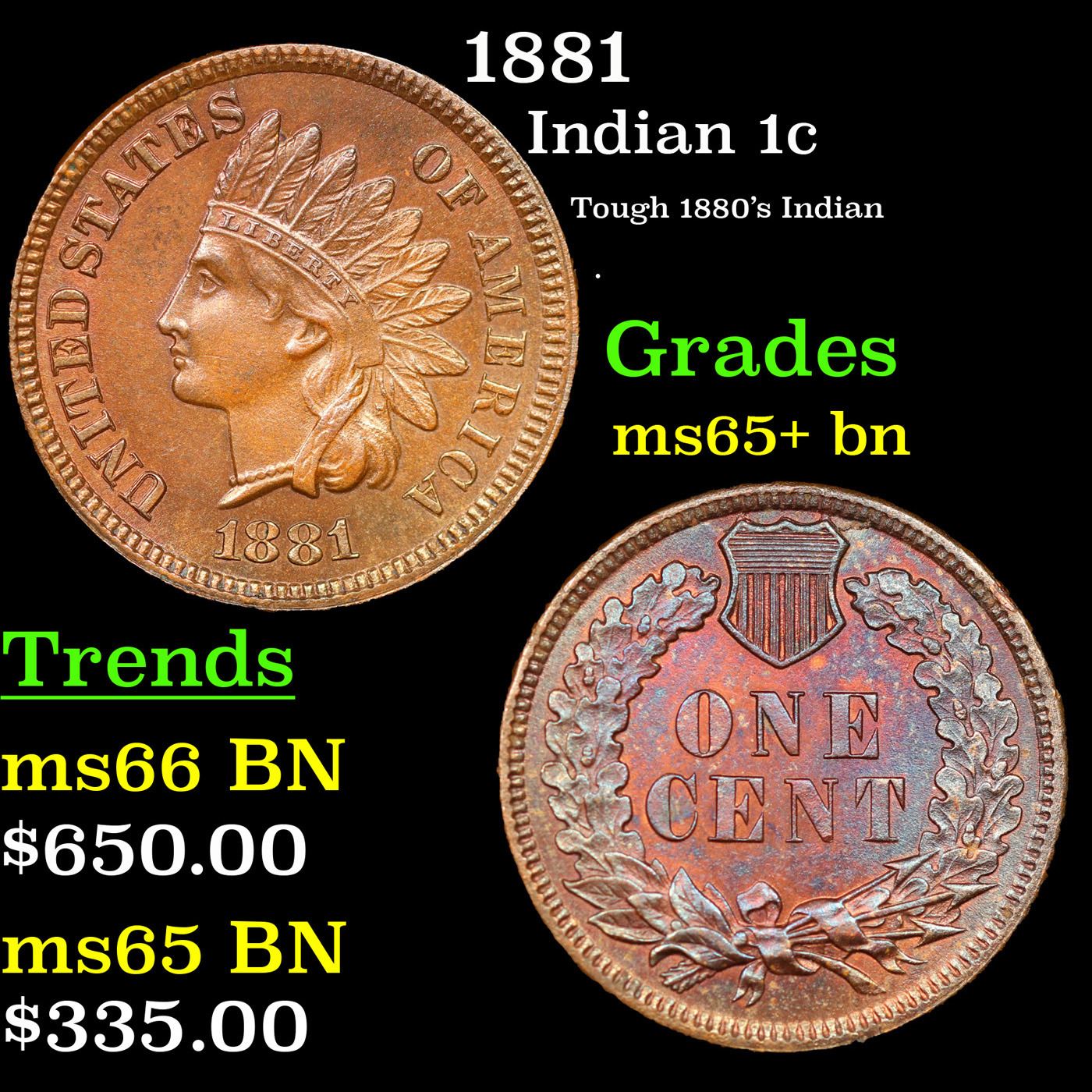 1881 Indian Cent 1c Grades GEM+ Unc BN.