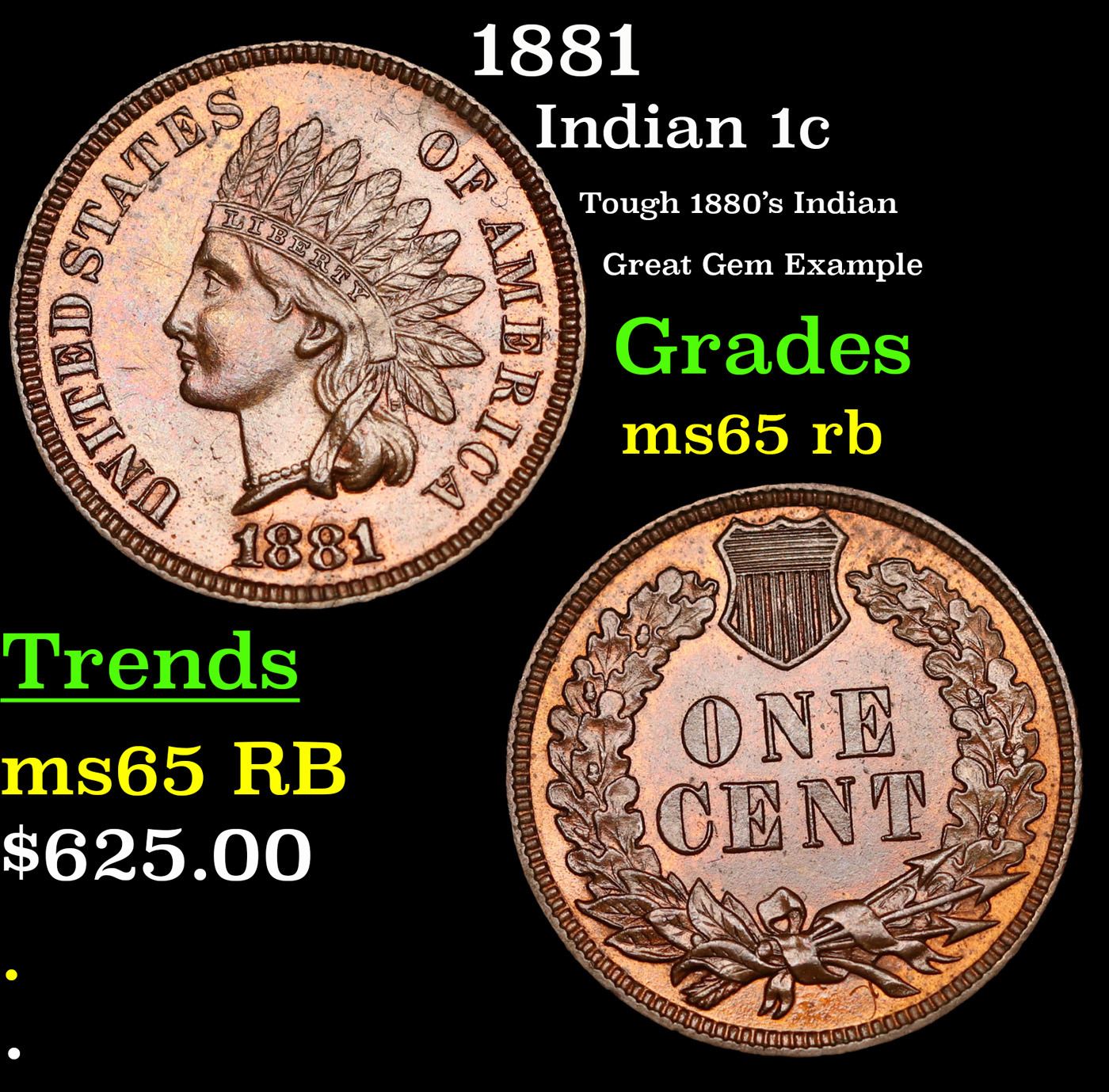 1881 Indian Cent 1c Grades GEM Unc RB.