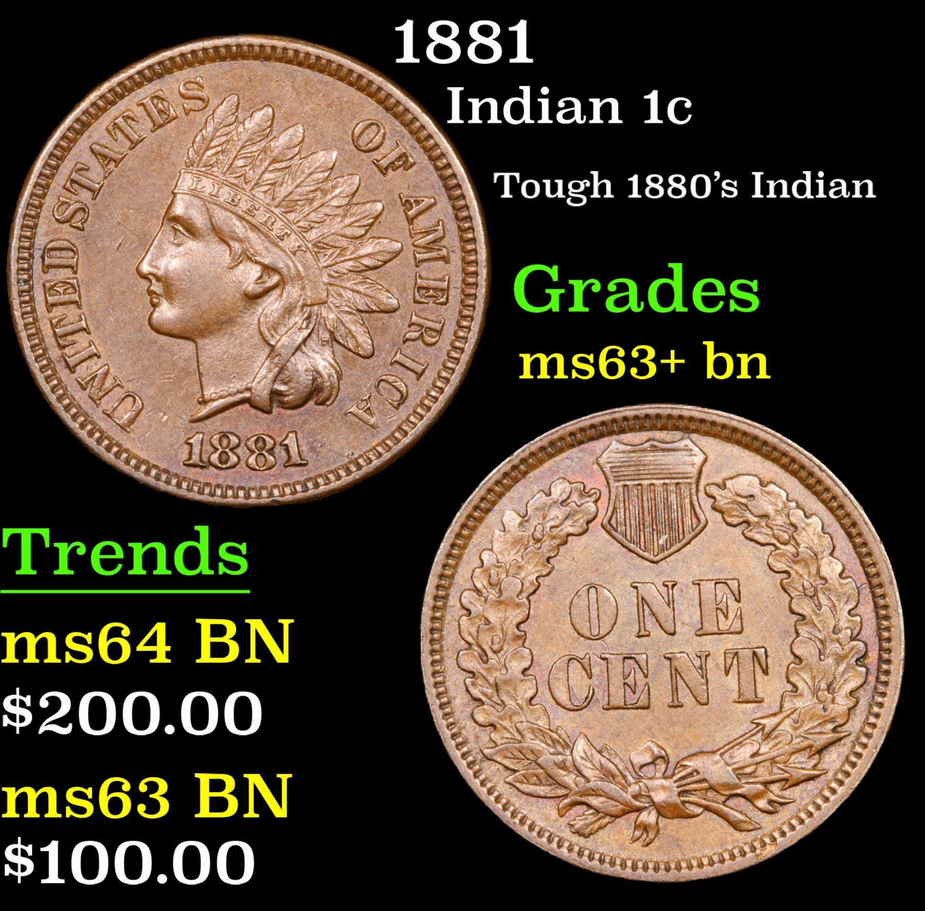 1881 Tough 1880's Indian . Indian Cent 1c Grades Select+ Unc BN.