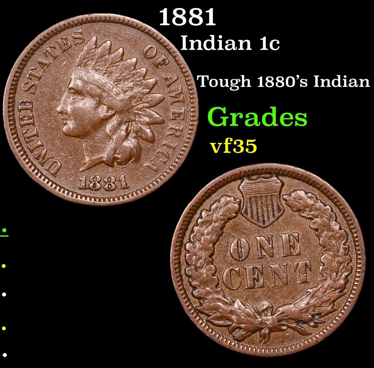 1881 Tough 1880's Indian . Indian Cent 1c Grades vf++.