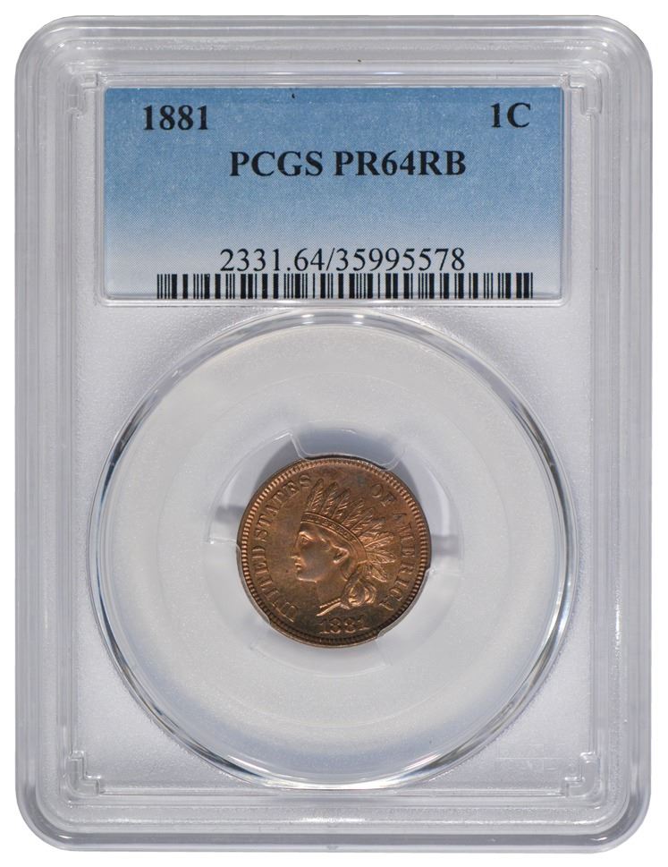 One 1881 Indian Cent PCGS PR64RB.