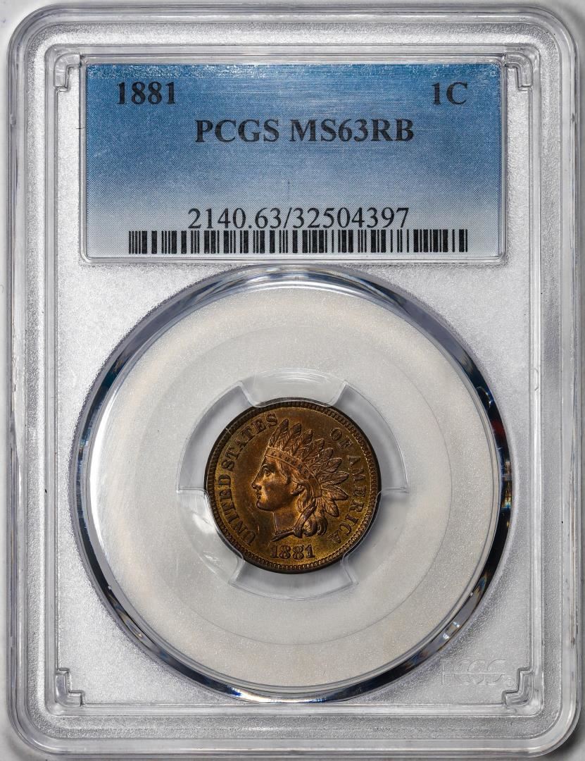 One 1881 Indian Head Cent Coin PCGS MS63RB. PCGS Graded.