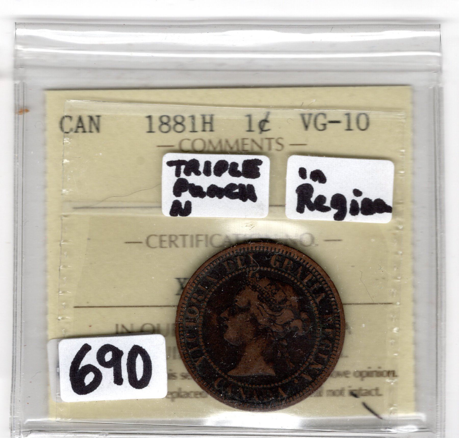 1881 LARGE CENT TRIPLE PUNCH N IN REGINA