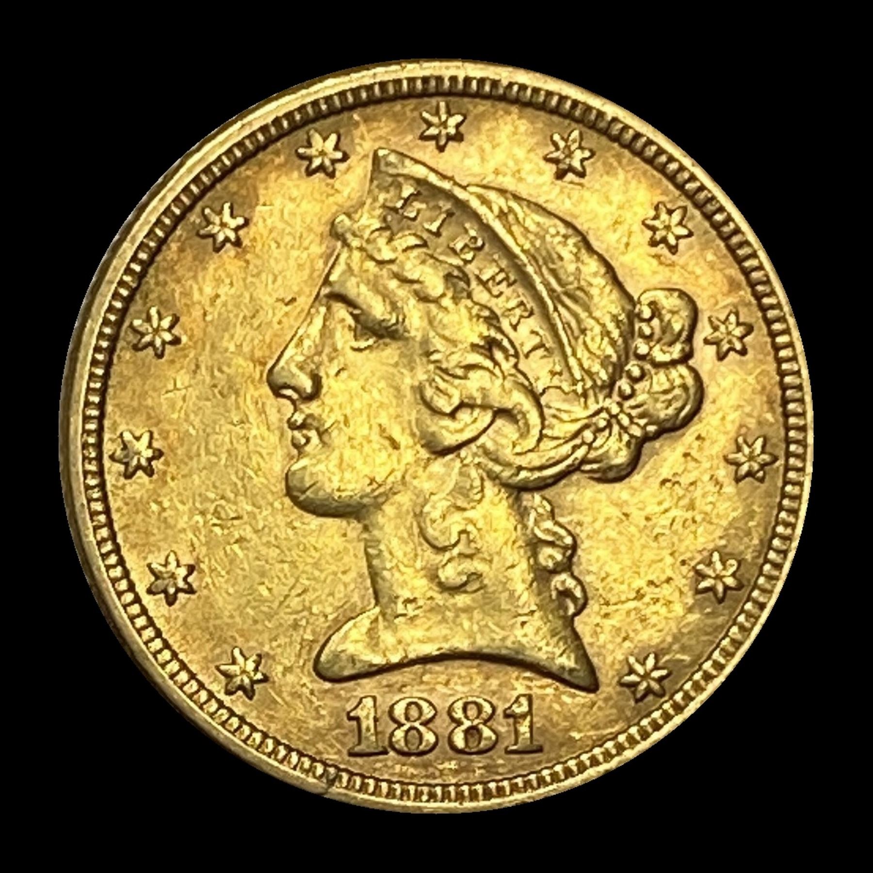 1881 Liberty Head Half Eagle $5 Gold CLOSELY UNCIRCULATED