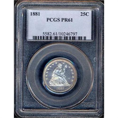 <b>1881 Liberty Seated Quarter Dollar. PCGS graded Proof 61.</b> Brilliant surfaces with light hairlines. Frosted devices <b>(PCGS # 5582)</b> <i>