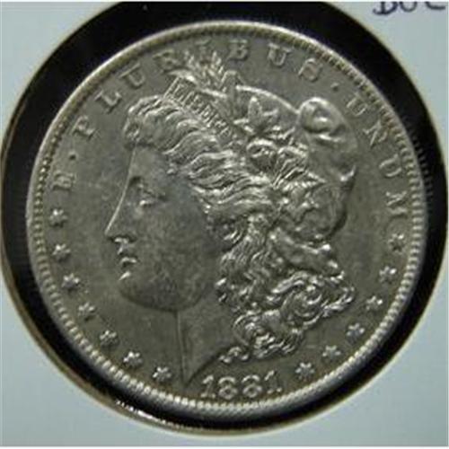 1881 MORGAN SILVER DOLLAR. This 1881 Silver Dollar was designed by Morgan in 1878 and the Reverse features an Eagle holding arrows and an olive branch. It was Minted in the New Orleans Mint.