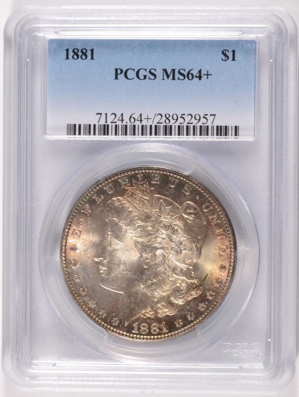 1881 MORGAN SILVER DOLLAR, PCGS MS-64+ GREAT COLOR!