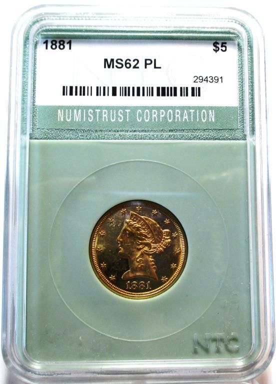 1881 MS 62 Prooflike $5 Gold Liberty $ 1500