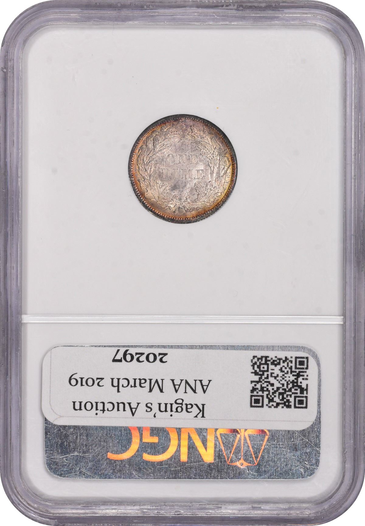 This impressively toned specimen represents gem quality at its best. The devices are sharply presented, and the eye appeal is substantial. The frosty and brilliant obverse center yields to a concentric array of satiny sunset orange, fiery crimson, and electric blue outward to the rim, while the reverse is much more brilliant with just a touch of fiery sunset orange at the rim. A pleasing survivor from a scant mintage of just 24,000 pieces -- $2,400 face value. We sense an opportunity with this lot.
