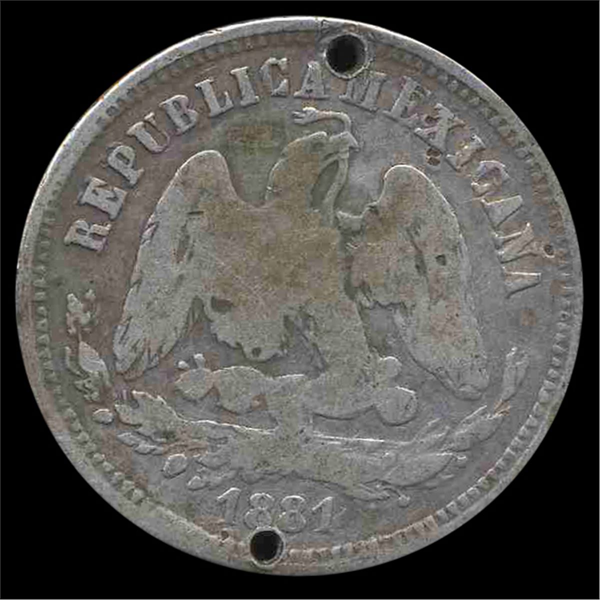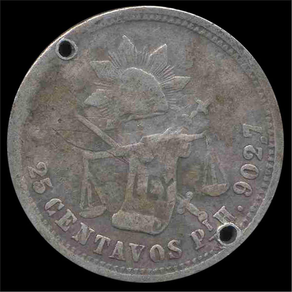 Rare early piece with repunched "EP"; holed; only 50k minted; 0.1965 ounces silver