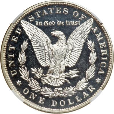 1881 Morgan Dollar. NGC graded Proof 65 Cameo. Only 984 pieces minted. Outstanding white on black deep cameo contrast throws off outstanding eye appeal. Brilliant without the least toning color all areas display full reflectiveness. It goes without saying the entire coin is sharply struck. Full definition on the eagle's wings and breast, similar razor-edge detail in the hair and curls, the cap and vegetable matter that Morgan used as sort of a garland atop Liberty's head. This magnificently preserved Gem is worthy of the finest collection of Proof Morgan dollars, and would also be an exemplary contribution to a Proof silver Type set. Pop 12; 32 finer (PCGS # 7316) .