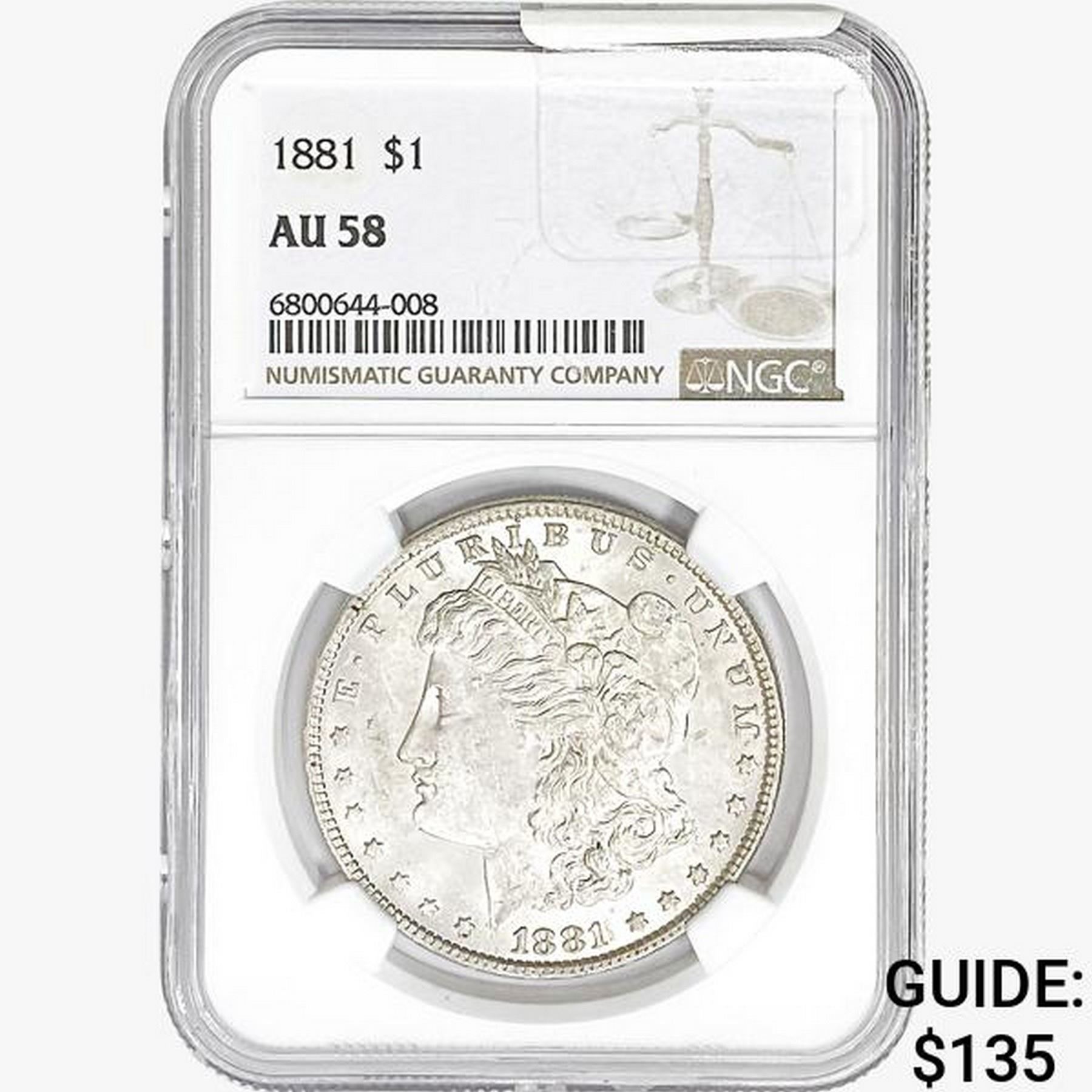1881 Morgan Silver Dollar NGC AU58