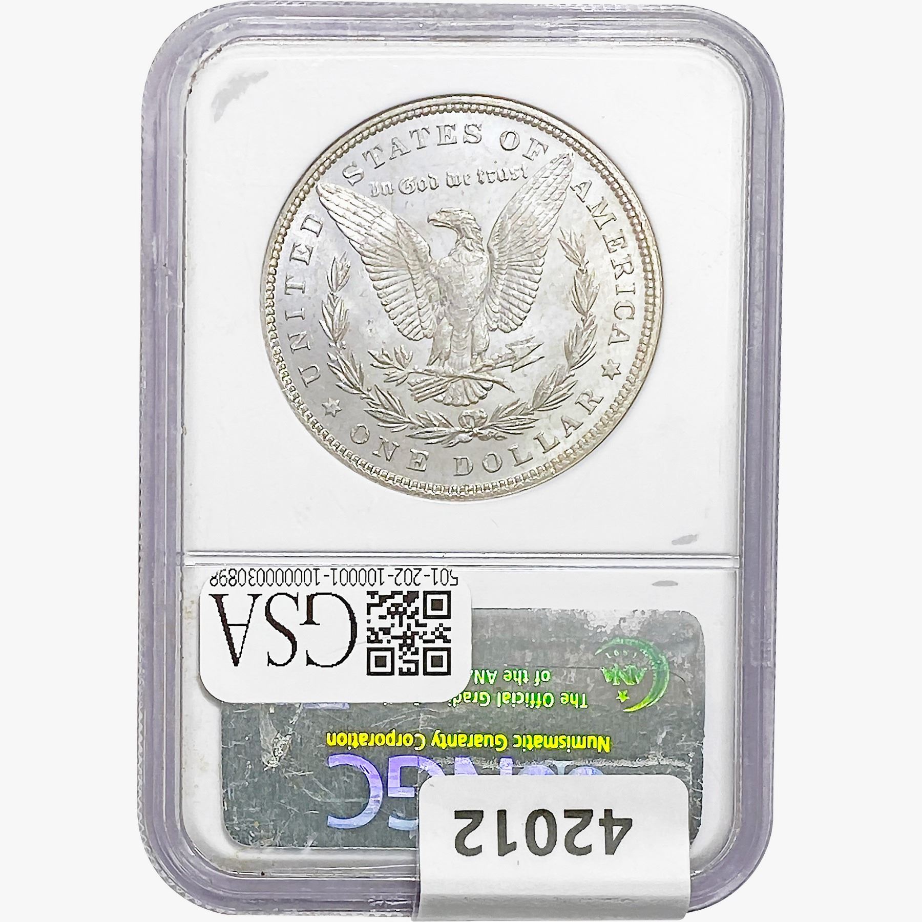 e. Coins sold referencing a third-party grading service are sold “AS IS” without any express or implied warranty, except for a guarantee by GSA that they are genuine. Removal or alteration of the holder, voids all of Bidder’s claims concerning that Product. Certain warranties may be available from the grading services and Bidders are referred to them for further details: Numismatic Guaranty Corporation (NGC), PO Box 4776, Sarasota, FL 34230, www.ngccoin.com/services/writtenguarantee.asp; Professional Coin Grading Services (PCGS), PO Box 9458, Newport Beach, CA 92658, www.pcgs.com/guarantee.html; ANACS, 6555 S. Kenton St., Ste. 303, Englewood, CO 80111; and Independent Coin Grading Co. (ICG), 7901 East Bellview, Ave., Suite 50, Englewood, CO 80111.