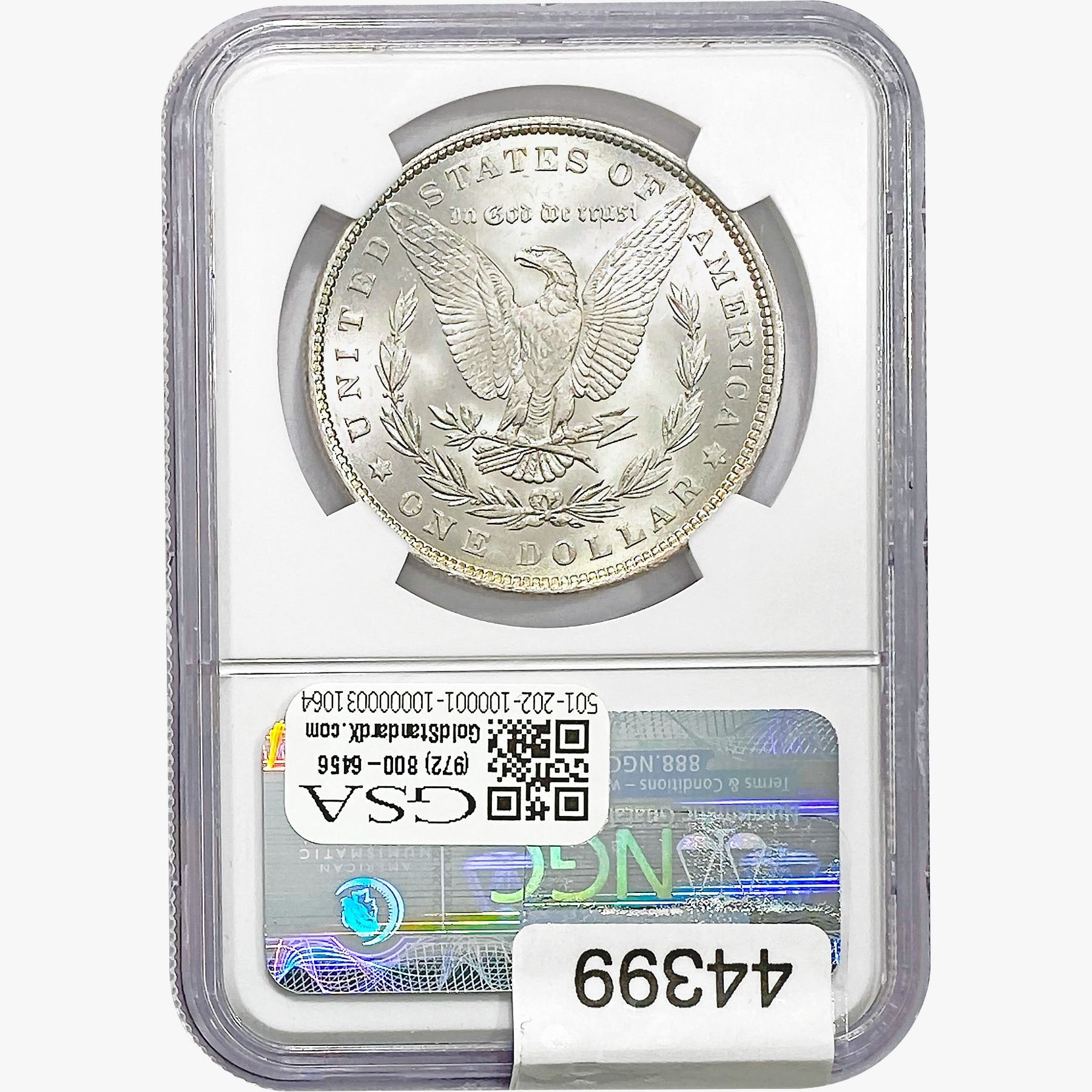 e. Coins sold referencing a third-party grading service are sold “AS IS” without any express or implied warranty, except for a guarantee by GSA that they are genuine. Removal or alteration of the holder, voids all of Bidder’s claims concerning that Product. Certain warranties may be available from the grading services and Bidders are referred to them for further details: Numismatic Guaranty Corporation (NGC), PO Box 4776, Sarasota, FL 34230, www.ngccoin.com/services/writtenguarantee.asp; Professional Coin Grading Services (PCGS), PO Box 9458, Newport Beach, CA 92658, www.pcgs.com/guarantee.html; ANACS, 6555 S. Kenton St., Ste. 303, Englewood, CO 80111; and Independent Coin Grading Co. (ICG), 7901 East Bellview, Ave., Suite 50, Englewood, CO 80111.
