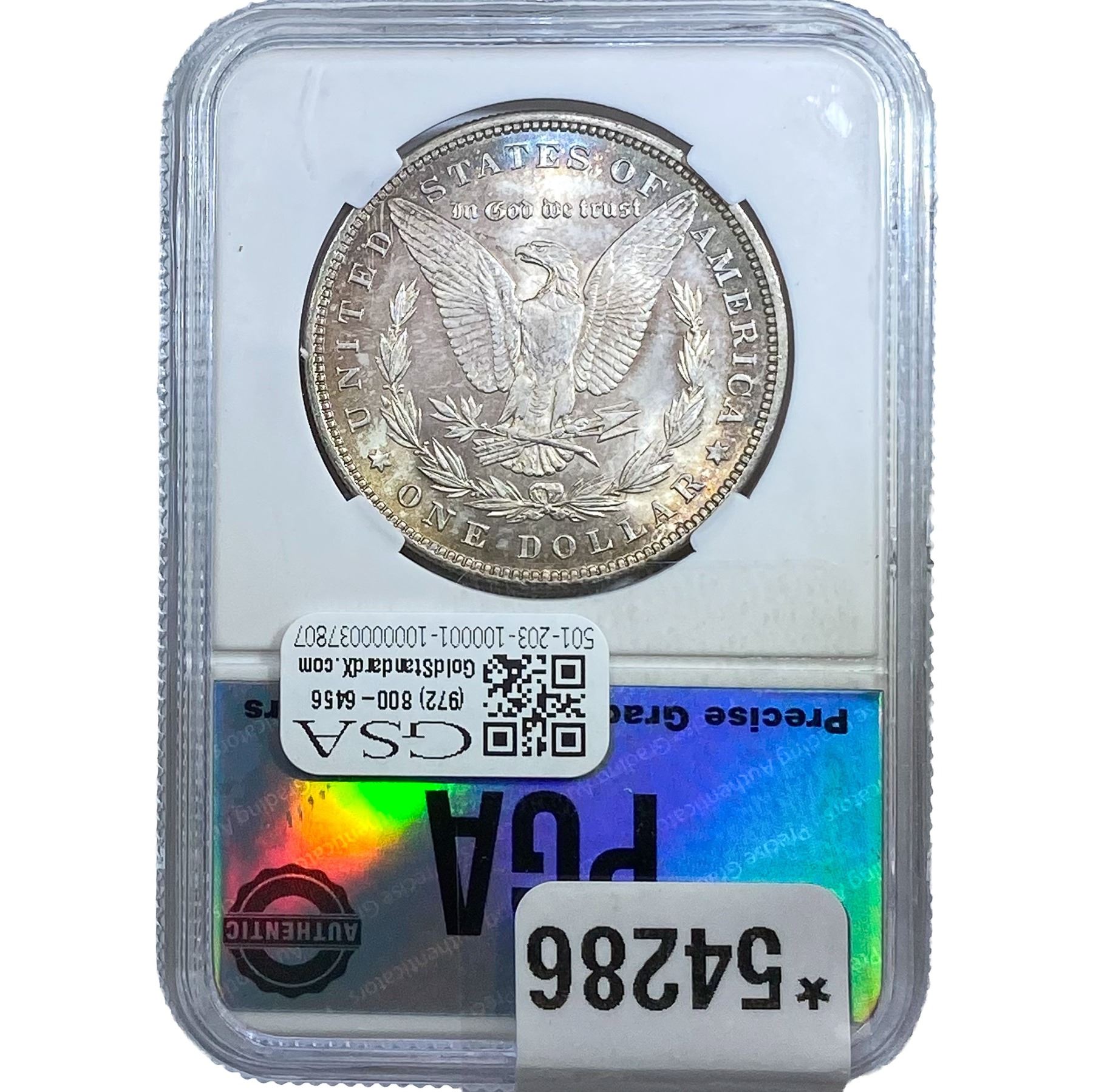 e. Coins sold referencing a third-party grading service are sold “AS IS” without any express or implied warranty, except for a guarantee by GSA that they are genuine. Removal or alteration of the holder, voids all of Bidder’s claims concerning that Product. Certain warranties may be available from the grading services and Bidders are referred to them for further details: Numismatic Guaranty Corporation (NGC), PO Box 4776, Sarasota, FL 34230, www.ngccoin.com/services/writtenguarantee.asp; Professional Coin Grading Services (PCGS), PO Box 9458, Newport Beach, CA 92658, www.pcgs.com/guarantee.html; ANACS, 6555 S. Kenton St., Ste. 303, Englewood, CO 80111; and Independent Coin Grading Co. (ICG), 7901 East Bellview, Ave., Suite 50, Englewood, CO 80111.
