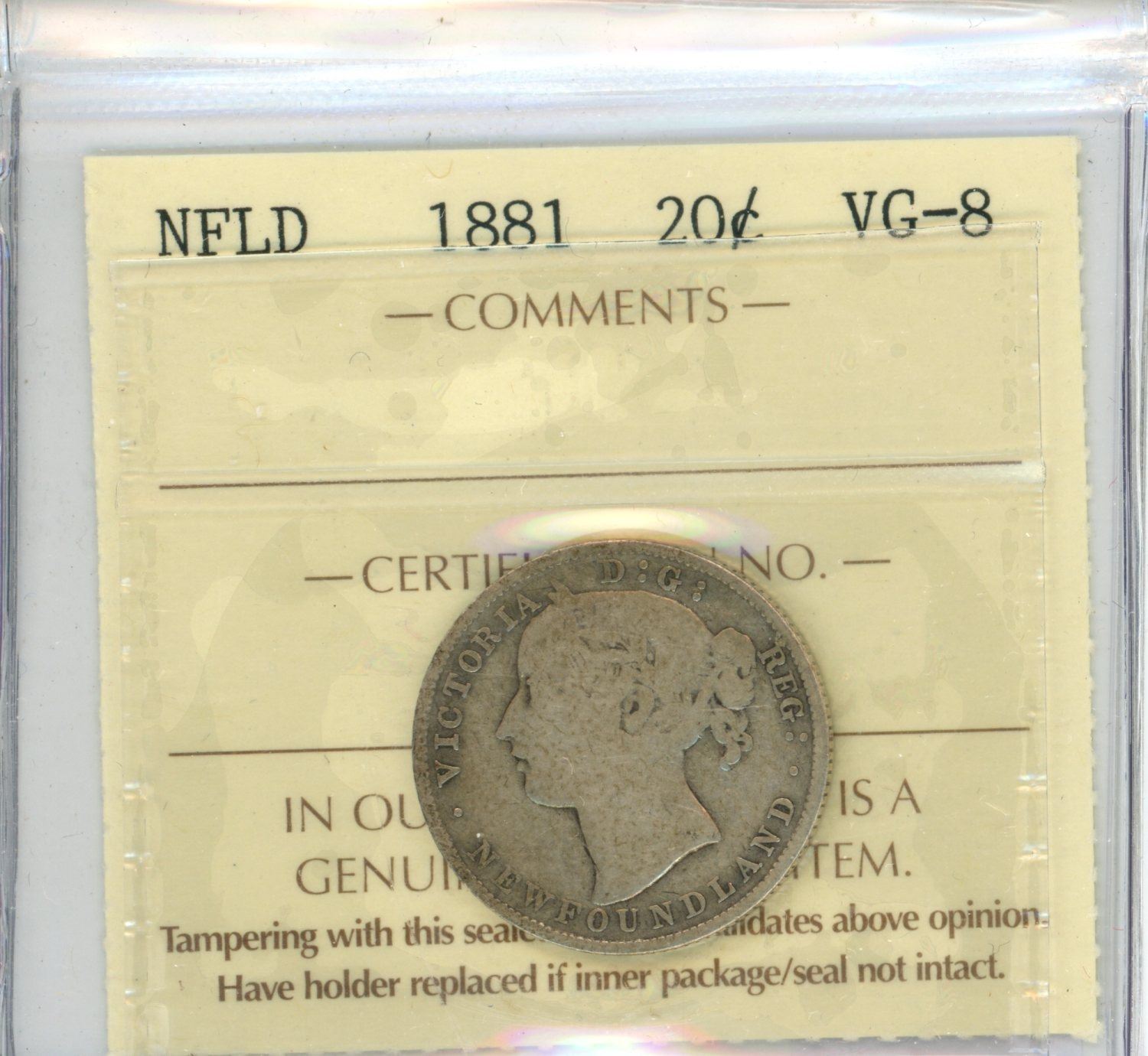 1881 NFLD 20¢, VG-8 (ICCS # XTM 042)