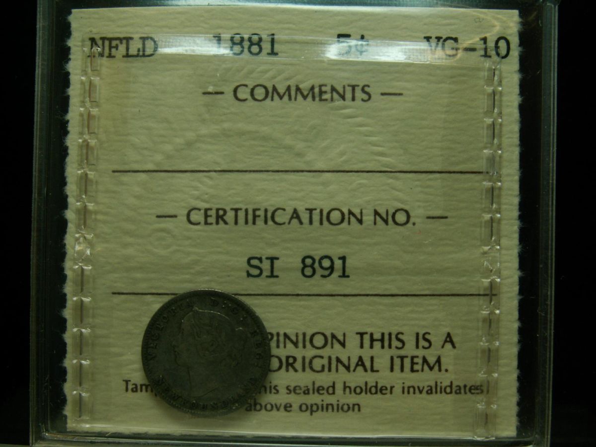 1881 NFLD 5¢ ICCS VG10