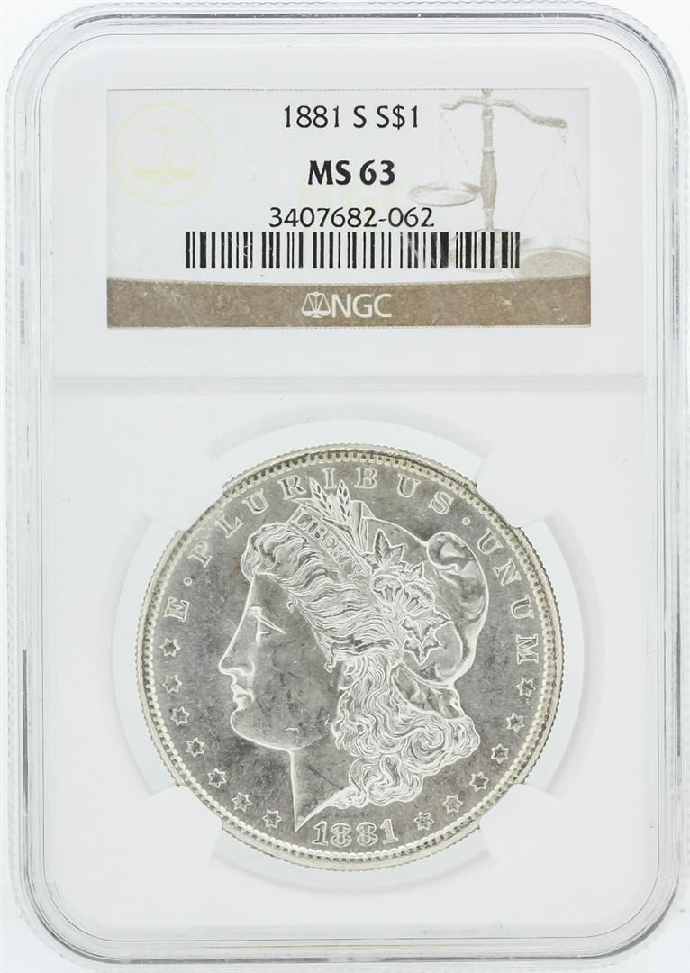 One 1881 NGC MS63 Morgan Silver Dollar.