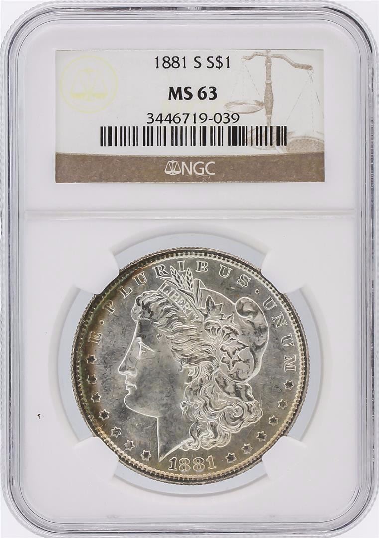 One 1881 NGC MS63 Morgan Silver Dollar.