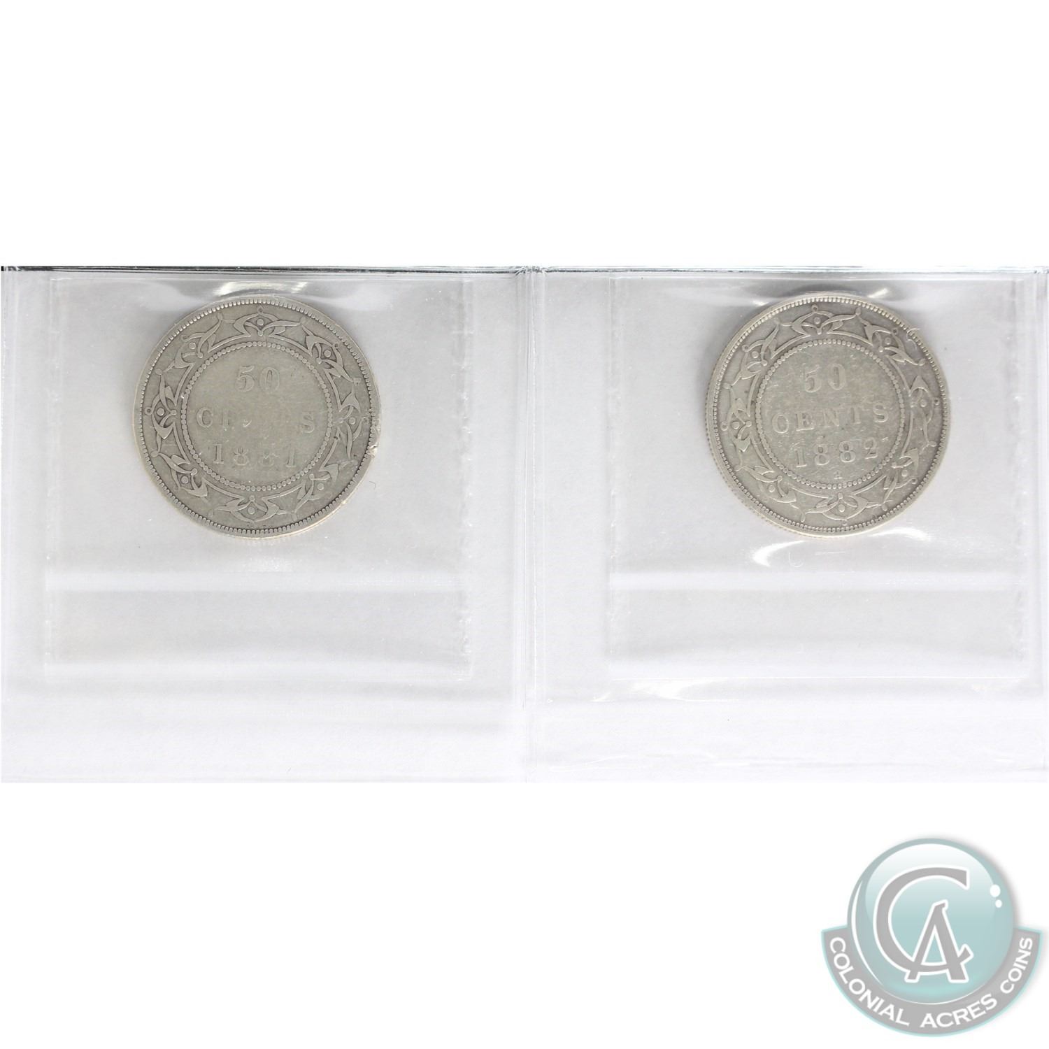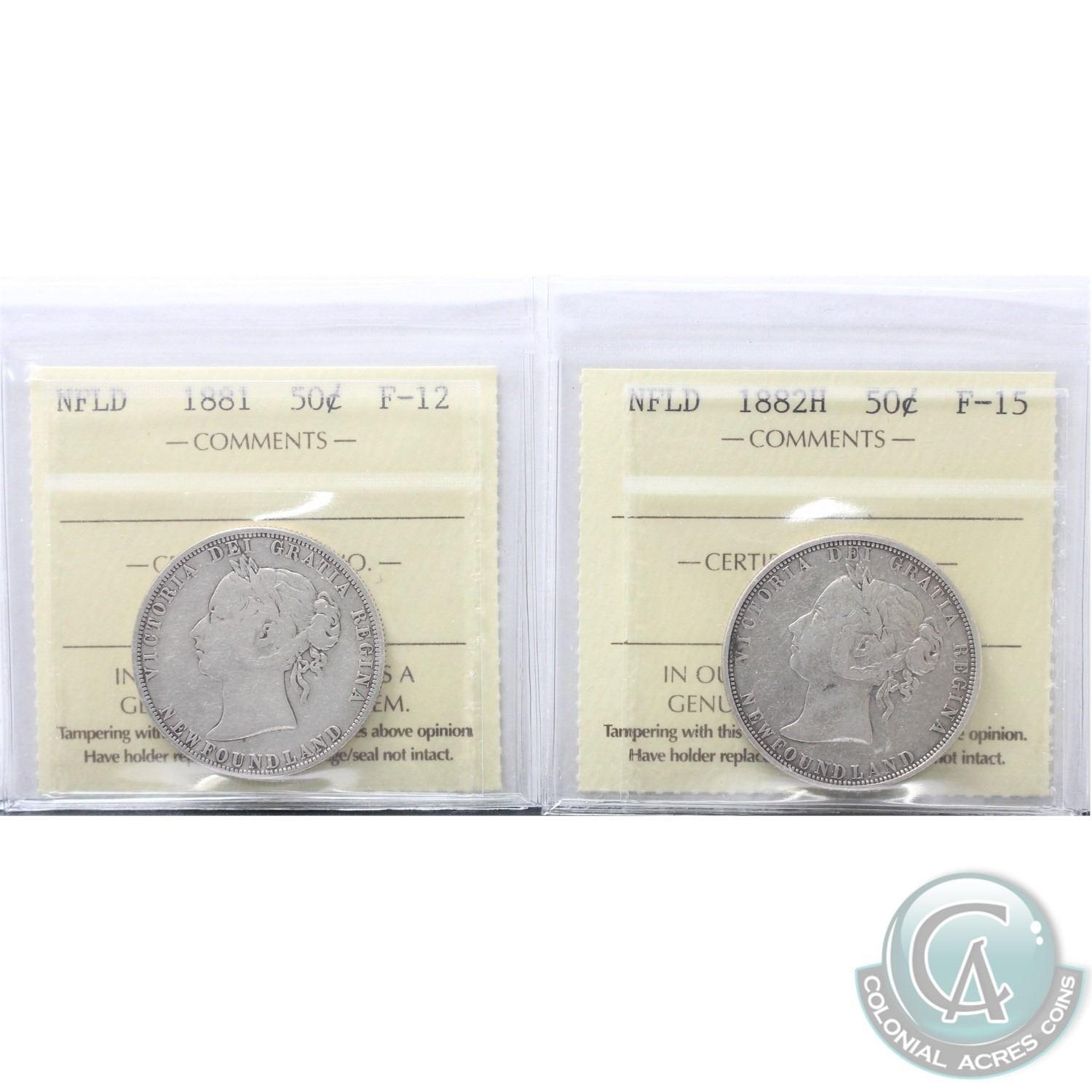 1881 Newfoundland 50-cent ICCS Certified F-12 & 1882H Newfoundland 50-cent ICCS F-15. 2pcs