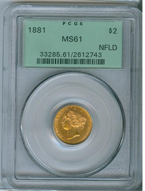 1881 Nfld $2 PCGS MS61. A lustrous example in Green PCGS holder.