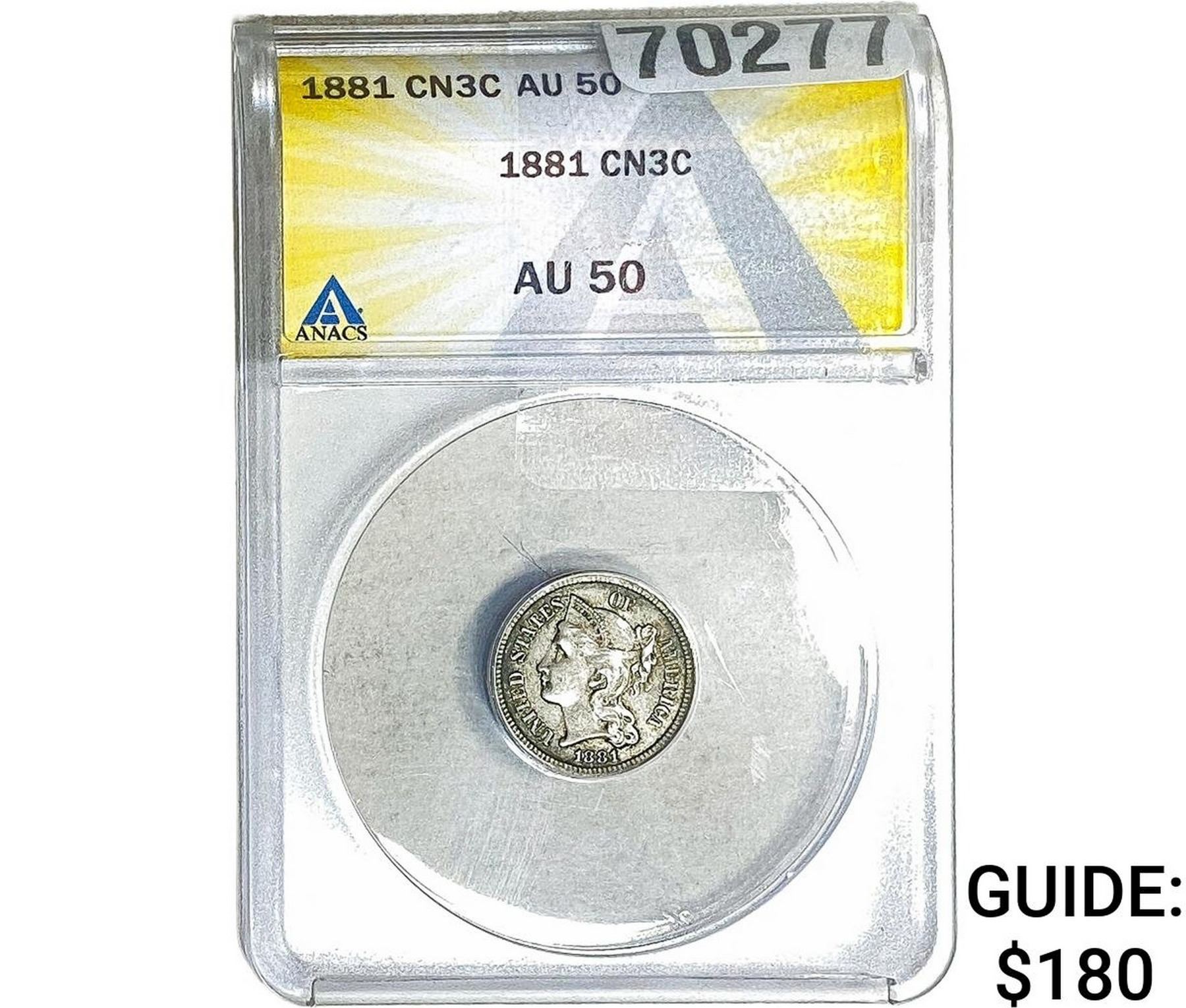 1881 Nickel Three Cent ANACS AU50 CN3C
