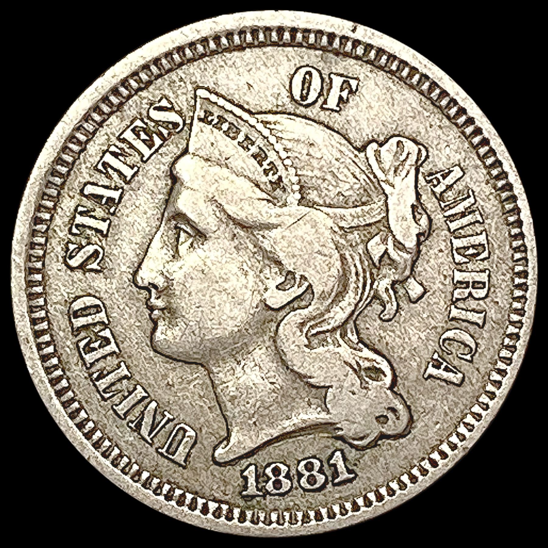 1881 Nickel Three Cent NEARLY UNCIRCULATED
