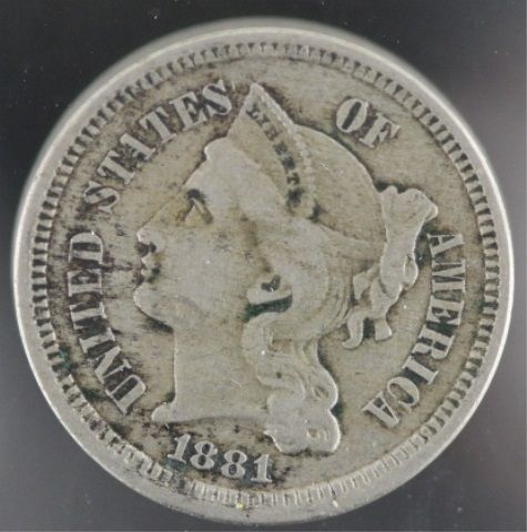 This coin is a very nice 1881 Three Cent Piece made of .75 copper and .25 nickel. This coin has wonderful VF details and would make a wonderful addition to any collection.