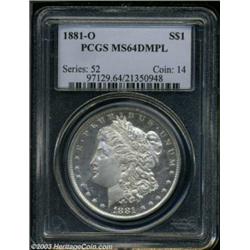 <table><tr><td><TABLE cellSpacing=0 cellPadding=0 width="100%" bgColor=#000000 border=0><TBODY> <TR><TD width="100%"><TABLE cellSpacing=1 cellPadding=3 width="100%" border=0><TBODY><TR><TD width="100%" bgColor=#79735c><FONT face=arial color=#ffffff size=3><B>Description</B> </FONT></TD></TR><TR><TD width="100%" bgColor=#ffffff><FONT face=arial size=2><B>1881-O $1 MS64 Deep Mirror Prooflike PCGS.</B></I> A more difficult DMPL date, this example displays some faint contact marks and hairlines on each side. A bright, attractive specimen. </FONT></TD></TR></TBODY></TABLE></TD></TR></TBODY></TABLE><BR><A name=PricesRealized></A><TABLE cellSpacing=0 cellPadding=0 width="100%" bgColor=#000000 border=0><TBODY><TR><TD width="100%"><TABLE cellSpacing=1 cellPadding=3 width="100%" border=0><TBODY><TR><TD width="100%" bgColor=#79735c><A name=PR><FONT face=arial color=#ffffff size=3><B>Previous Prices from Heritage Auctions</B> </FONT></A></TD></TR><TR><TD bgColor=#f6f6ed><TABLE cellSpacing=0 cellPadding=0 width="100%" border=1><TBODY><TR><TD align=middle width="33%"><B>Date</B></TD><TD align=middle width="33%"><B>Service</B></TD><TD align=middle width="33%"><B>Price</B></TD></TR><TR bgColor=whitesmoke><TD width="33%"><B>08/06/2003</B></TD><TD width="33%">ANACS</TD><TD width="33%">$1,207.50</TD></TR><TR bgColor=whitesmoke><TD width="33%"><B>05/03/2003</B></TD><TD width="33%">NGC</TD><TD width="33%">$718.75</TD></TR><TR bgColor=whitesmoke><TD width="33%"><B>07/30/2002</B></TD><TD width="33%">PCGS</TD><TD width="33%">$747.50</TD></TR><TR bgColor=whitesmoke><TD width="33%"><B>05/31/2001</B></TD><TD width="33%">PCGS</TD><TD width="33%">$718.75</TD></TR><TR bgColor=whitesmoke><TD width="33%"><B>08/13/1999</B></TD><TD width="33%">PCGS</TD><TD width="33%">$747.50</TD></TR><TR bgColor=whitesmoke><TD width="33%"><B>06/22/2000</B></TD><TD width="33%">PCGS</TD><TD width="33%">$690.00</TD></TR><TR bgColor=whitesmoke><TD width="33%"><B>03/01/1998</B></TD><TD width="33%">PCGS</TD><TD width="33%">$550.00</TD></TR></TBODY></TABLE></TD></TR><TR><TD bgColor=#ffffff><FONT face=arial size=1 ?>PLEASE NOTE: All prices realized reflect the final hammer price PLUS the buyer's premium in auctions that charge a buyer's premium. Each item has a notation at the top of the listing indicating whether that lot included a buyer's premium. Example: A item that sells with a final hammer price of $100 and a 20% buyer's premium will display with a price realized of $120. All information listed is intended to be as accurate as possible, but errors are possible. Please use this guide carefully and inform us of any inaccuracies. </FONT></TD></TR></TBODY></TABLE></TD></TR></TBODY></TABLE><BR><TABLE cellSpacing=0 cellPadding=0 width="100%" bgColor=#000000 border=0><TBODY><TR><TD width="100%"><TABLE cellSpacing=1 cellPadding=3 width="100%" border=0><TBODY><TR><TD width="100%" bgColor=#79735c colSpan=6><FONT face=arial color=#ffffff size=3><B>Price Guide*</B> </FONT></TD></TR><TR bgColor=#f6f6ed><TD align=middle><B>Grade</B> </TD><TD align=middle><B>Coin World<BR>(Trends)</B> </TD><TD align=middle><B>Numismedia<BR>Retail</B> </TD><TD align=middle><B>Numismedia<BR>Wholesale</B> </TD><TD align=middle><B>Coin<BR>Universe</B> </TD><TD align=middle><B>Heritage<BR>Value Index</B> </TD></TR><TR bgColor=#ffffff><TD align=middle>63</TD><TD align=right>$175.00</TD><TD align=right>$160.00</TD><TD align=right>$128.00</TD><TD align=right>$170.00</TD><TD align=right>$139.88</TD></TR><TR style="FONT-WEIGHT: bold" bgColor=#cccfdd><TD align=middle>64</TD><TD align=right>$850.00</TD><TD align=right>$920.00</TD><TD align=right>$735.00</TD><TD align=right>$780.00</TD><TD align=right>$639.00</TD></TR><TR bgColor=#ffffff><TD align=middle>65</TD><TD align=right>---</TD><TD align=right>---</TD><TD align=right>$13,000.00</TD><TD align=right>$12,500.00</TD><TD align=right>$9,910.00</TD></TR><TR bgColor=#ffffff><TD colSpan=6><FONT size=1>*All information listed is intended to be as accurate as possible, but errors are possible. No item may be returned or refused based on this information which is provided as a service to our customers. You should contact each pricing source directly to determine the accuracy of this information. </FONT></TD></TR></TBODY></TABLE></TD></TR></TBODY></TABLE><BR><TABLE cellSpacing=0 cellPadding=0 width="100%" bgColor=#000000 border=0><TBODY><TR><TD width="100%"><TABLE cellSpacing=1 cellPadding=3 width="100%" border=0><TBODY><TR><TD width="100%" bgColor=#79735c><FONT face=arial color=#ffffff size=3><B>Population Guide</B> </FONT></TD></TR><TR bgColor=#ffffff><TD align=middle><!-- Begin Output of Population Grid--><TABLE cellSpacing=0 cellPadding=0 width="100%" border=0><TBODY><TR><TD vAlign=center><TABLE cellSpacing=0 width="100%" border=1 cellsadding="3"><TBODY><TR><TD vAlign=center><TABLE cellSpacing=0 cellPadding=3 width="100%" border=1><TBODY><TR><TD vAlign=center align=middle bgColor=#f0f1e8 colSpan=2 <CENTER><FONT face=Arial size=2><B>PCGS Pop </B></FONT><CENTER></CENTER></TD><TD vAlign=center align=middle bgColor=#f0f1e8 colSpan=2><CENTER><FONT face=Arial size=2><B>NGC Pop</B></CENTER></FONT></TD></TR><TR><TD vAlign=center><FONT face=Arial size=2>(64)</FONT> </TD><TD vAlign=center align=right><FONT face=Arial size=2>91</FONT> </TD><TD vAlign=center><FONT face=Arial size=2>(64)</FONT> </TD><TD vAlign=center align=right><FONT face=Arial size=2>51</FONT> </TD></TR><TR><TD vAlign=center><FONT face=Arial size=2>(>64)</FONT> </TD><TD vAlign=center align=right><FONT face=Arial size=2>4</FONT> </TD><TD vAlign=center><FONT face=Arial size=2>(>64)</FONT> </TD><TD vAlign=center align=right><FONT face=Arial size=2>1</FONT> </TD></TR></TBODY></TABLE></TD></TR></TBODY></TABLE></TD></TR></TBODY></TABLE><!-- End Output of Population Grid--></TD></TR></TBODY></TABLE></TD></TR></TBODY></TABLE><BR><TABLE cellSpacing=0 cellPadding=0 width="100%" bgColor=#000000 border=0><TBODY><TR> Important notice: Heritage usually auctions material at the rate of 200-25