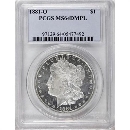 <B>1881-O $1 MS64 Deep Mirror Prooflike PCGS.</B></I> Sharply struck, frosty devices stand out against deeply mirrored fields. Close to brilliant, but the centers display a hint of tan toning. Scattered minor grazes preclude a finer designation. PCGS has certified five finer Deep Mirror Prooflike coins (1/08).<BR><I>From The Oxford Collection.</B></I><BR><BR><b>Shipping:</b> Coins & Currency (<a target="_blank" href="http://www.heritageauctions.com/common/shipping.php">view shipping information</a>)