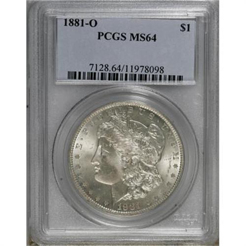 <B>1881-O $1 MS64 PCGS.</B></I> PCGS Population (2545/491). NGC Census: (3298/446). Mintage: 5,708,000. Numismedia Wsl. Price for NGC/PCGS coin in MS64: $135. (#7128)<BR><BR><B>Coin Engraver:</B> George T. Morgan<BR><BR><b>Shipping:</b> Coins & Currency (<a target="_blank" href="http://www.heritageauctions.com/common/shipping.php">view shipping information</a>)