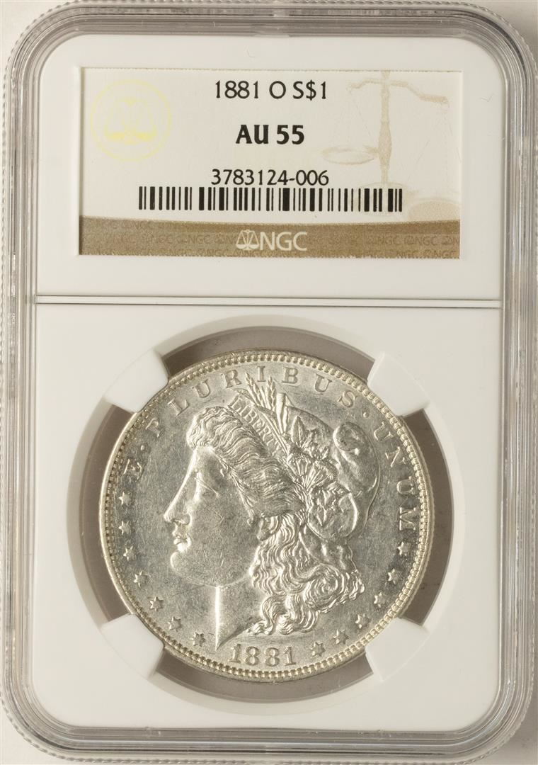 One 1881-O $1 Morgan Silver Dollar Coin NGC AU55. NGC Certified.