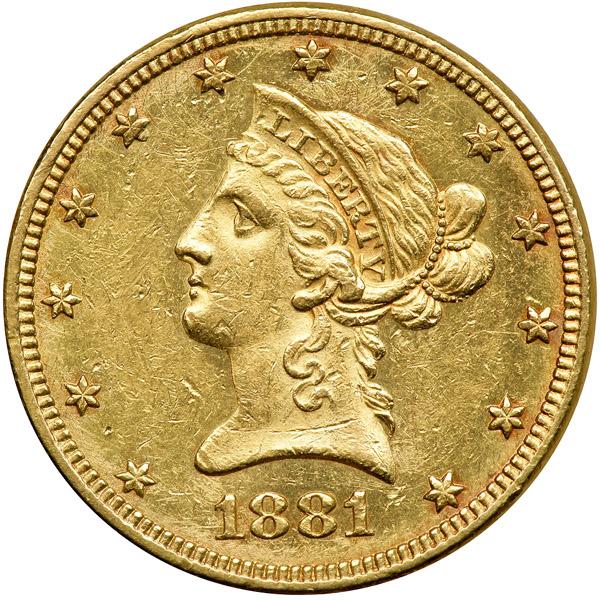1881-O. Sharpness of AU-53. Light to moderate scratches and scuff marks in the fields, yet, with enough mint luster remaining to justify the AU grade. Rare low mintage date, only 8,350 struck.