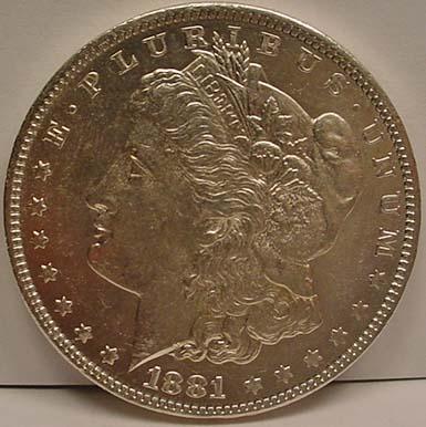 1881-O MORGAN SILVER DOLLAR - UNC.
