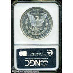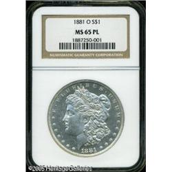 <B>1881-O<img border='0' src='http://www.heritagecoins.com/images/star.gif' width=10 height=10>$1 MS65 Prooflike NGC.</B></I> Crisply struck devices stand out nicely against the mirrored fields. White surfaces are free of any significant contact marks. Lot:10046