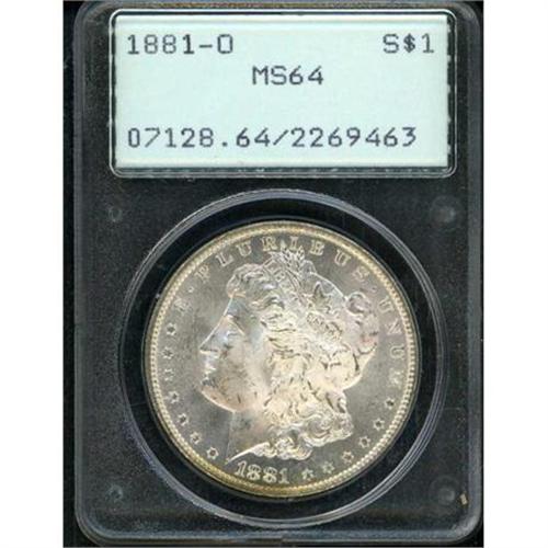 <b>1881-O Morgan Dollar. PCGS graded MS64.</b> Frosty white texture with splendid visual appeal <b>(PCGS # 7128)</b>