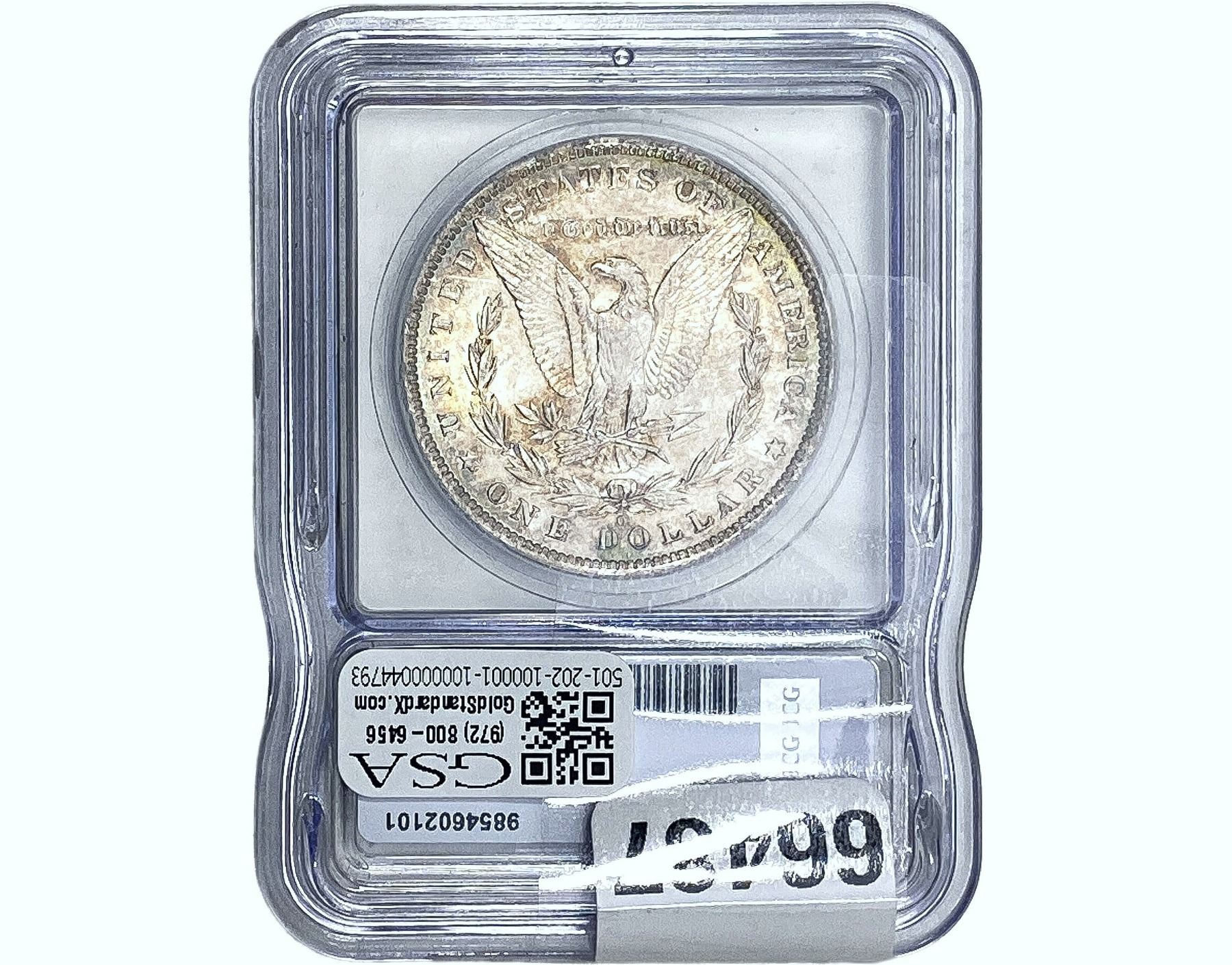 l. All non-certified coins and currency are guaranteed genuine, but are not guaranteed as to grade, since grading is a matter of opinion, an art and not a science, and therefore the description rendered by GSA or any third-party grading service may not agree with the opinion of others (including trained experts), and the same expert may not grade the same item with the same grade at two different times. GSA may, but is not obligated to, express an opinion as to non-certified numismatic items, in GSA’s opinion, or by its employees’ experience and the current interpretation of the American Numismatic Association’s standards as of the date the catalog was prepared. There is no guarantee or warranty expressed or implied that the grading opinions utilized by GSA, if any, will meet the standards of any grading service at any time in the future.