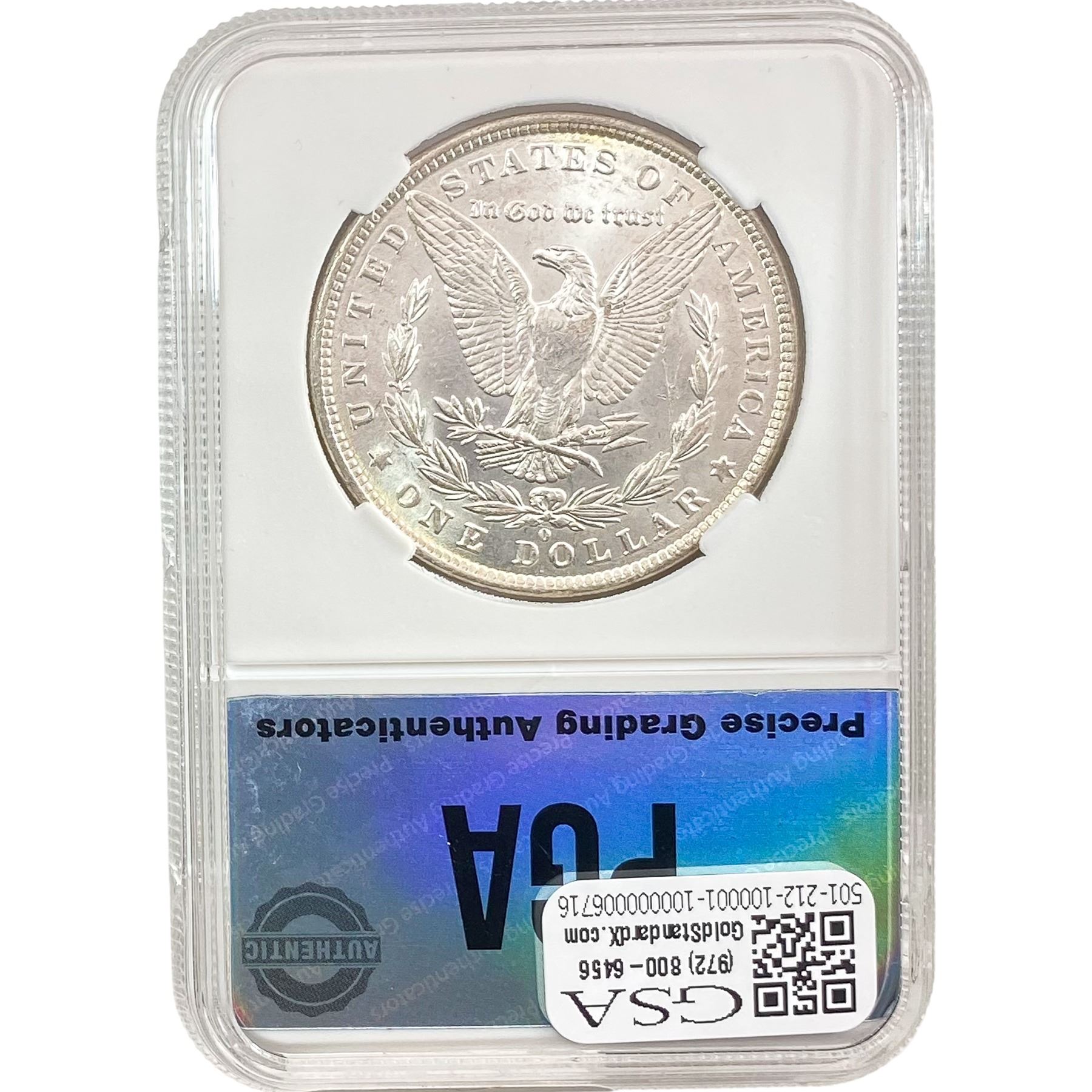 e. Coins sold referencing a third-party grading service are sold “AS IS” without any express or implied warranty, except for a guarantee by GSA that they are genuine. Removal or alteration of the holder, voids all of Bidder’s claims concerning that Product. Certain warranties may be available from the grading services and Bidders are referred to them for further details: Numismatic Guaranty Corporation (NGC), PO Box 4776, Sarasota, FL 34230, www.ngccoin.com/services/writtenguarantee.asp; Professional Coin Grading Services (PCGS), PO Box 9458, Newport Beach, CA 92658, www.pcgs.com/guarantee.html; ANACS, 6555 S. Kenton St., Ste. 303, Englewood, CO 80111; and Independent Coin Grading Co. (ICG), 7901 East Bellview, Ave., Suite 50, Englewood, CO 80111.