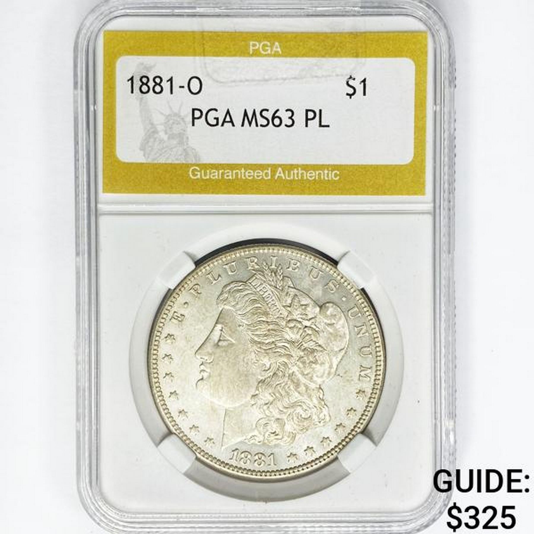 1881-O Morgan Silver Dollar PGA MS63 PL