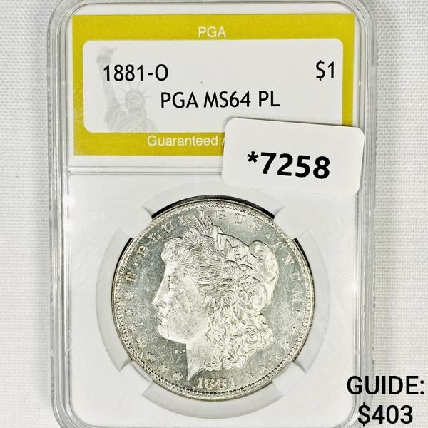 1881-O Morgan Silver Dollar PGA-MS64 PL