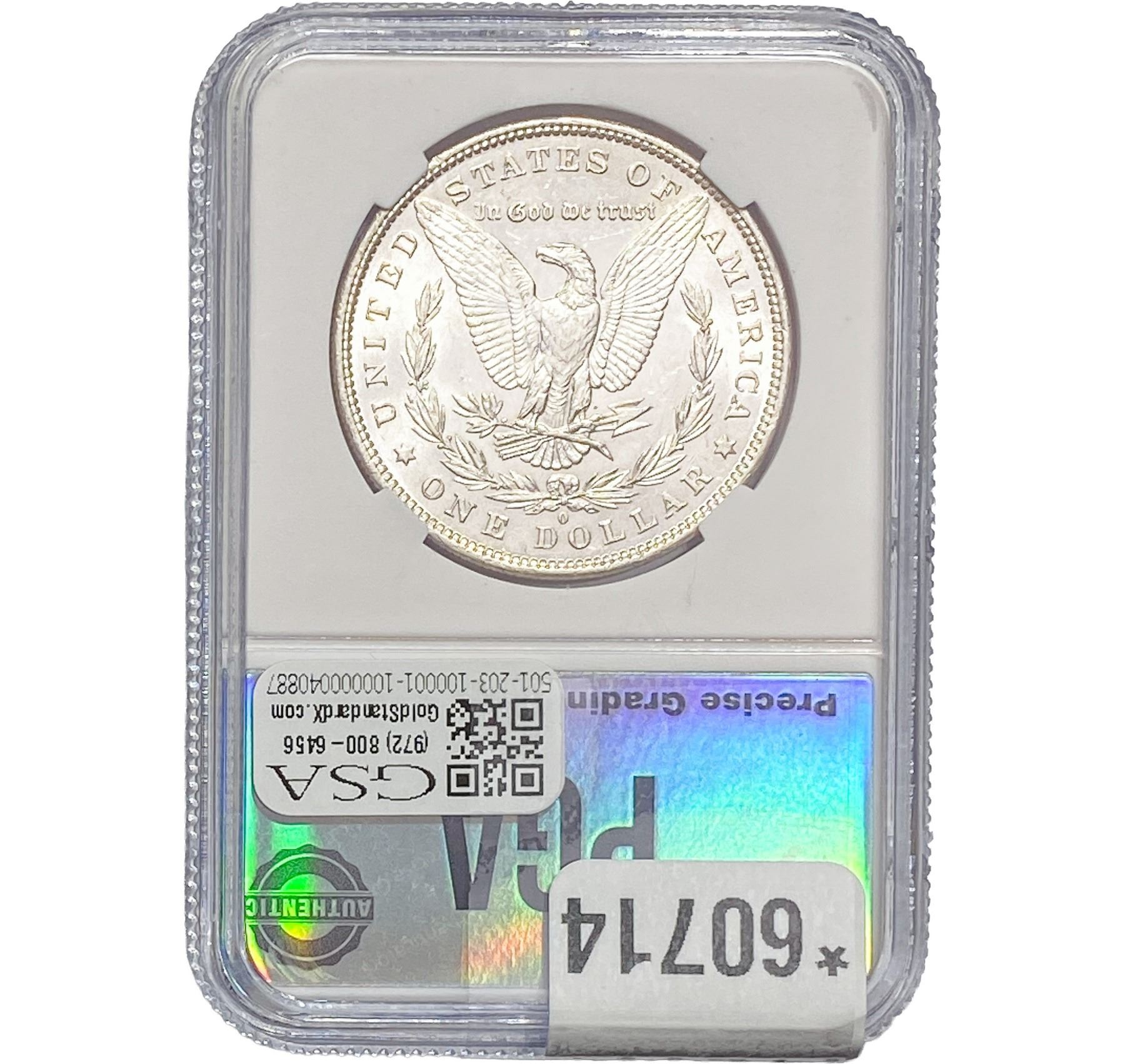COINS AND CURRENCY LISTED IN GSA’S CATALOG AS GRADED AND ENCAPSULATED BY PCGS, NGC, ANACS, ICG, PCGS CURRENCY, PMG, PCGS BANKNOTE GRADING, CMC OR ANY OTHER THIRD-PARTY GRADING SERVICE ARE LIKEWISE SOLD “AS-IS” EXCEPT AS EXPRESSLY SET FORTH HEREIN. ALL THIRD-PARTY GRADING SERVICE GUARANTEES, INCLUDING AUTHENTICITY, ARE THE SOLE RESPONSIBILITY OF THE THIRD-PARTY GRADING SERVICE AND NOT WARRANTIES OR GUARANTEES OF GSA. BIDDERS SHOULD CONTACT THESE THIRD-PARTY GRADING SERVICES DIRECTLY WITH RESPECT TO ANY CLAIMS OR QUESTIONS THEY MAY HAVE CONCERNING THEIR GUARANTEES AND WARRANTIES. BIDDERS ACKNOWLEDGE AND AGREE THAT AUCTIONEER IS NOT BOUND BY OR LIABLE FOR ANY OPINION OR CERTIFICATION BY ANY THIRD-PARTY GRADING SERVICE. REMOVAL OF A PRODUCT FROM ITS PROTECTIVE CASING OR HOLDER OR ALTERATION OF ANY COIN HOLDER WAIVES ALL RIGHTS CONCERNING THE PRODUCT CONTAINED THEREIN.