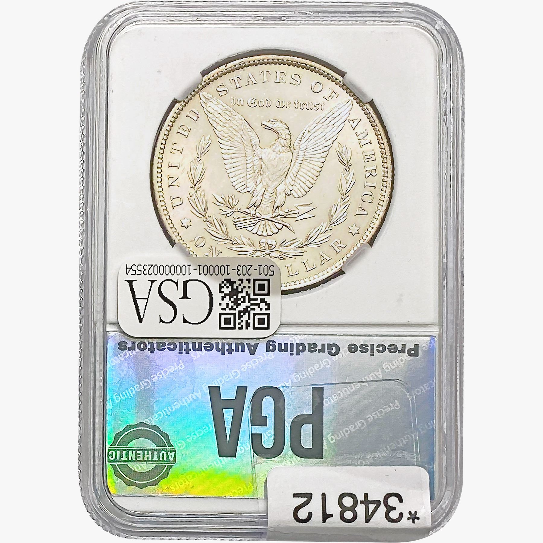 COINS AND CURRENCY LISTED IN GSA’S CATALOG AS GRADED AND ENCAPSULATED BY PCGS, NGC, ANACS, ICG, PCGS CURRENCY, PMG, PCGS BANKNOTE GRADING, CMC OR ANY OTHER THIRD-PARTY GRADING SERVICE ARE LIKEWISE SOLD “AS-IS” EXCEPT AS EXPRESSLY SET FORTH HEREIN. ALL THIRD-PARTY GRADING SERVICE GUARANTEES, INCLUDING AUTHENTICITY, ARE THE SOLE RESPONSIBILITY OF THE THIRD-PARTY GRADING SERVICE AND NOT WARRANTIES OR GUARANTEES OF GSA. BIDDERS SHOULD CONTACT THESE THIRD-PARTY GRADING SERVICES DIRECTLY WITH RESPECT TO ANY CLAIMS OR QUESTIONS THEY MAY HAVE CONCERNING THEIR GUARANTEES AND WARRANTIES. BIDDERS ACKNOWLEDGE AND AGREE THAT AUCTIONEER IS NOT BOUND BY OR LIABLE FOR ANY OPINION OR CERTIFICATION BY ANY THIRD-PARTY GRADING SERVICE. REMOVAL OF A PRODUCT FROM ITS PROTECTIVE CASING OR HOLDER OR ALTERATION OF ANY COIN HOLDER WAIVES ALL RIGHTS CONCERNING THE PRODUCT CONTAINED THEREIN.