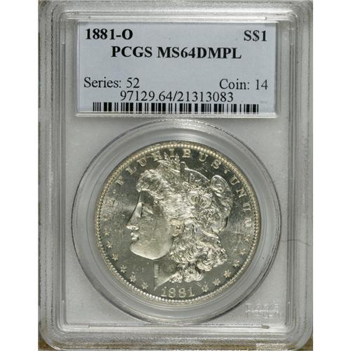 <B>1881-O S$1 MS64 Deep Mirror Prooflike PCGS.</B></I> A decisively struck and virtually brilliant Choice Morgan dollar with profoundly reflective fields and a hint of cameo frost on the devices. PCGS and NGC combined have certified just six DMPL examples finer (1/07).<BR><BR><b>Shipping:</b> Coins & Currency (<a target="_blank" href="http://www.heritageauctions.com/common/shipping.php">view shipping information</a>)