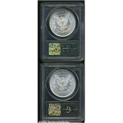 <B>1881-O<S$1> MS64 PCGS,</B></I> well struck, good luster, clean surfaces, dusky tan color; and an <B>1887-O MS64 PCGS,</B></I> rich orange, rose-violet, and ocean-blue colors alternate across the obverse, an untoned reverse, sharply struck. 2 Coins <BR><BR><B>Important notice:</B> Heritage usually auctions material at the rate of 200-250 lots per hour. On some occasions eBay Live bid software or the Internet may not be able to keep up with the pace of the auction. We recommend placing a realistic absentee bid now as insurance to avoid disappointment. Occasionally the auctioneer may eliminate or reject an eBay Live bid, and the auctioneer may also reopen a lot after the close of the eBay live bidding (usually because we missed an audience bid), and may reject your bid even if it shows you as the winning bidder. By bidding via eBay Live, you agree that Heritage may award the lot to another bidder at its sole discretion under the circumstances described above or any other reasonable circumstances. Since eBay bids are not shown to us until we open the lot on the floor, we treat those bids just like floor bids. In most cases the floor responds before the eBay bid is presented to us, due to Internet lag time, so for consistency we have made it a policy that floor bids are always considered first over tie eBay live bids. Also please note that all Heritage lots purchased through eBay Live carry a 20% Buyer's Premium. Please make sure you read the Terms and Conditions before you bid.