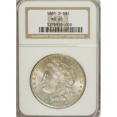 1881-O S$1 MS65 NGC. This is a pleasing Gem whose surf