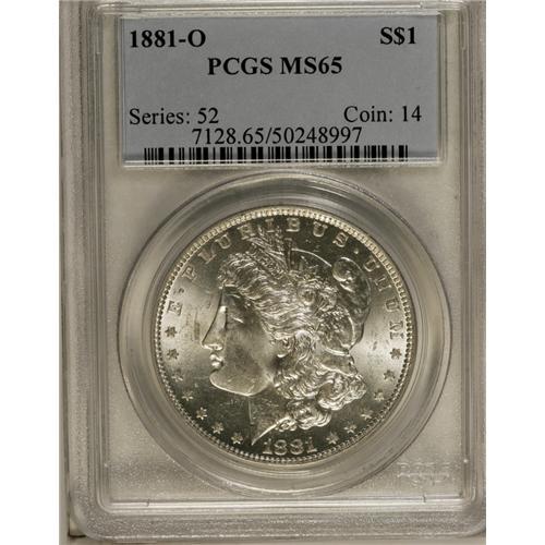 1881-O S$1 MS65 PCGS. Dazzling luster complements the