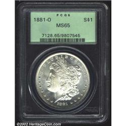 1881-O S$1 MS65 PCGS. Well struck and carefully preserved with a bold strike. The flashy fields are.