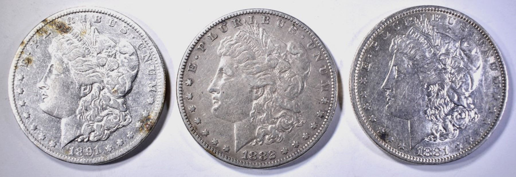 1881-O cleaned, 82 VF/XF & 91-O XF MORGAN DOLLARS