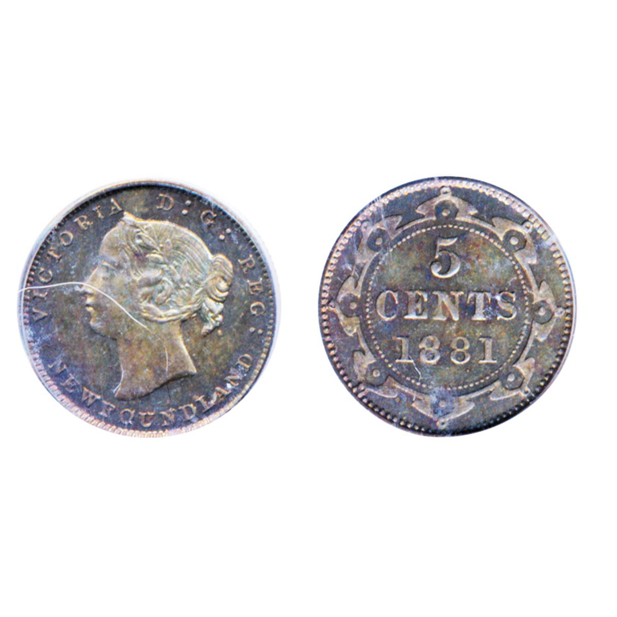 1881. PCGS graded Mint State-65. A Gem, with attractive medium heavy, multi-hued toning. Very good ‘eye appeal’.